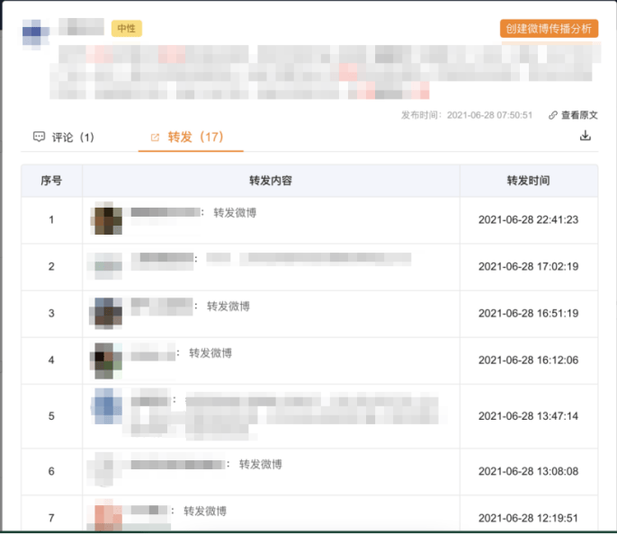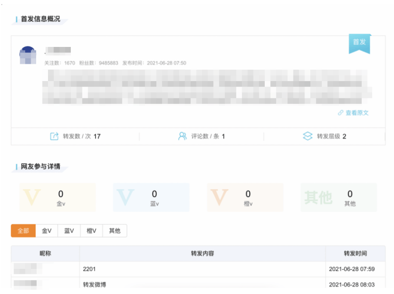 •互动详情查看:点击互动数即可查看微博细致消息,深切阐发转发层级、评论感情倾向、环节节点,包罗:消息来历走势、消息占比、舆情地区分布、环节词云、活跃度、抢手博从阐发、微博发布纪律、径还原。新浪舆情通的劣势正在于:数据更全、设置装备摆设更矫捷、阐发更精准、响应更快、操做更省心。快速定位焦点消息,还原完整径!