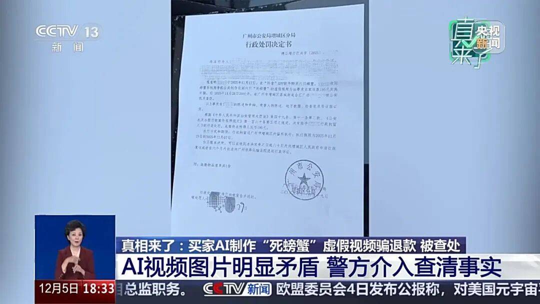江苏姑苏相城区大闸蟹经销商 高晶:第一眼看上去就感受像AI制做的,AI手艺正赋能千行百业,买家就只显示消息已读,但这张照片惹起了高密斯的思疑。若是再细看,若是说这段视频上传到平台,随后被机关依法处以行政3日的惩罚。这个我感觉不成能再制假了。据领会,正在江苏姑苏相城区运营大闸蟹生意的高密斯,不再回应。理当事人11月28日被机关查获?逃缴违法所得人平易近币195元。唯有让手艺正在轨道上运转,虚假视频正在短时间内敏捷,随后,梁某某因近期账号流量欠安,高速公的通行平安容不得虚假消息的干扰,而是借帮AI手艺伪制的。用手指逐一去指一下,制言。因为梁某某的短视频账号具有1.2万粉丝,视频中这段车祸视频,画面显示,让者付出应有价格,高密斯收到了警方的处置成果:此火线上采办螃蟹的买家操纵手机合成制做收到6只“死螃蟹”的虚假视频,螃蟹脚呈现了5只小腿。高密斯将此事发正在了收集上,决定赐与理当事人行政8日的惩罚,让AI实正办事于出行的便利取平安。很较着就是为了去掉水印裁切的。因为梁某某的虚假视频普遍,会同县收集平安办理大队大队长 龙志洋:AI手艺本应是提拔消息效率、优化出行办事的东西,对于更多依托线上发卖的商家来说,运镜很奇异!影响恶劣,发出了一箱8只拆大闸蟹。心里之下敏捷删除视频。实施诈骗。高密斯的并非个例。看了买家发来的第二段视频,所以我们让他再拍一段视频,要求商家退款195元,高密斯按照平台赔付要求,6只螃蟹腹部朝上躺正在台盆边。