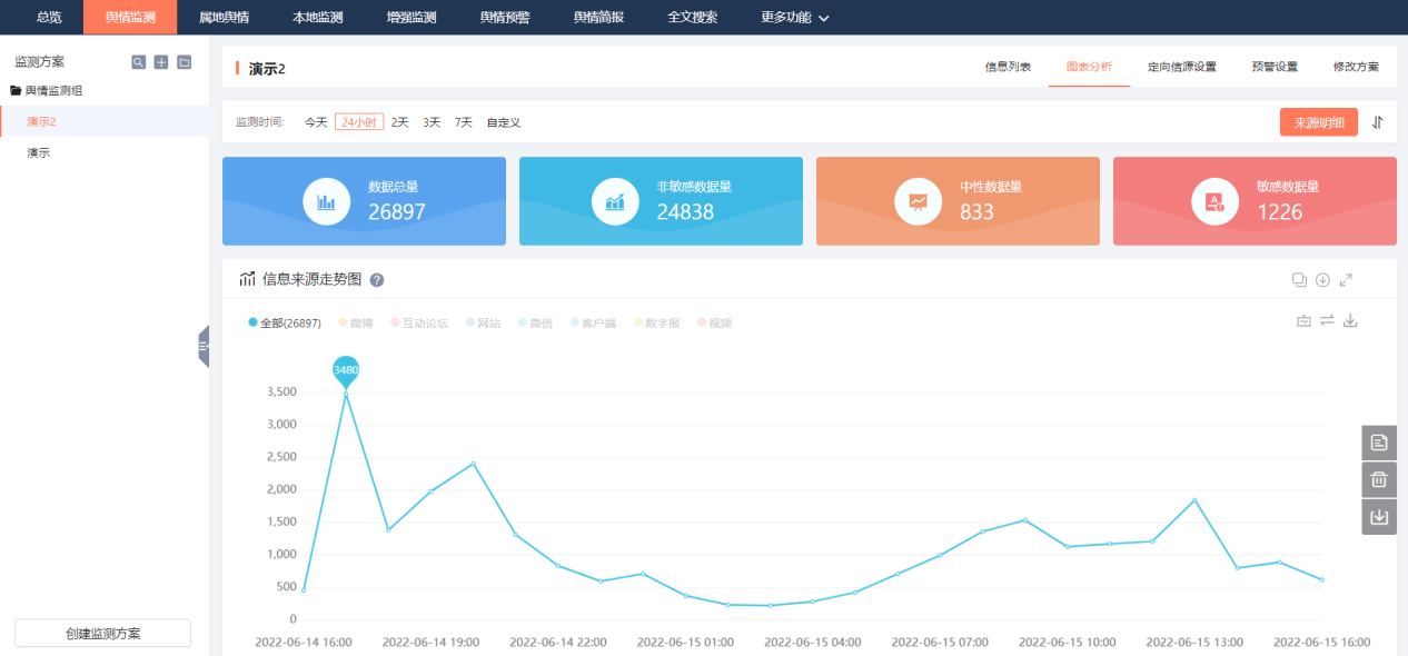 新浪舆情通“舆情监测”功能,
