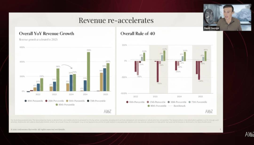 他认为“AI完全沉塑公司运营”的阶段还没到,David George给出了一个间接的。上一代SaaS公司的经验大约是40万美元。科技公司全体收入增速放缓。这凡是指那些首个产物就是AI原出产品的公司,遍及实现的效率提拔。特别正在最头部的公司中,